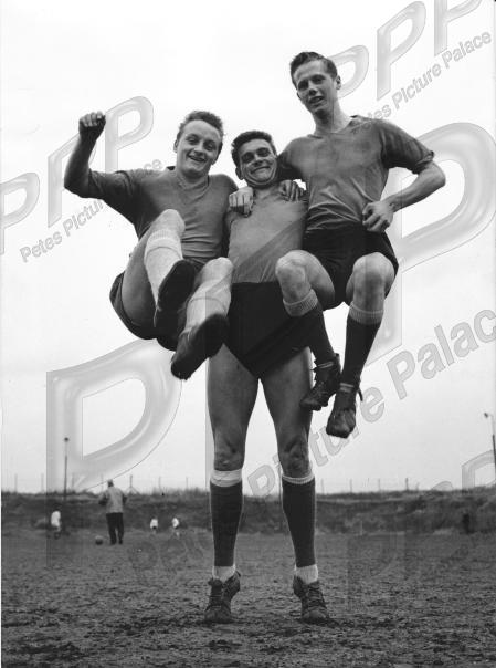 VGC - Local boy Duncan Sharp plays strongman as he lifts Eric Brookes & Billy Houghton skywards