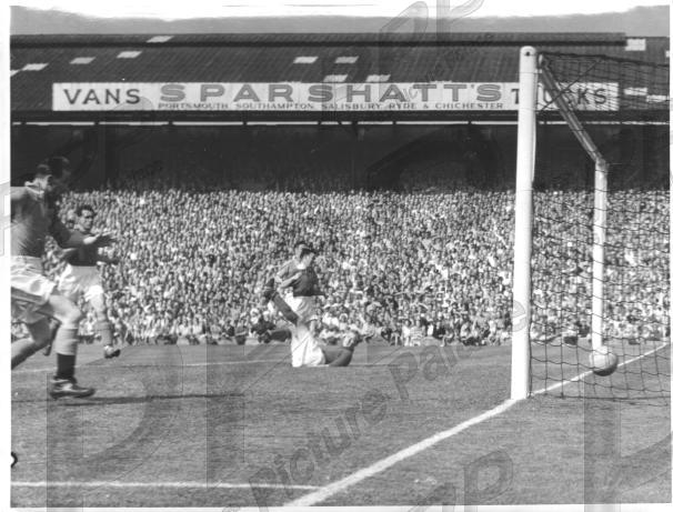 - VGC - unstamped original - hidden behind Pompey defender Stephen & fallen keeper Dore, Brown's shot goes over the line as Mortensen races in to make sure