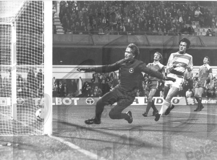 - VGC - Knight desperately straining to reach a deflected shot which went down as an og by Ellis (2nd left) in this League Cup tie 2nd round game in which Rangers thrashed Pompey 5-0