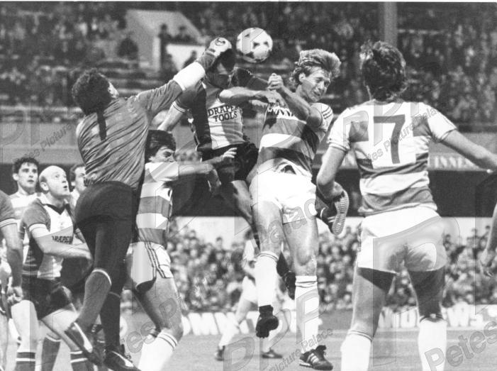 - VGC - Shilton goes clattering into a heap of bodies to punch away from Wicks and keep Rangers out in this 4th round 2nd replay which the Hoops won 4-0