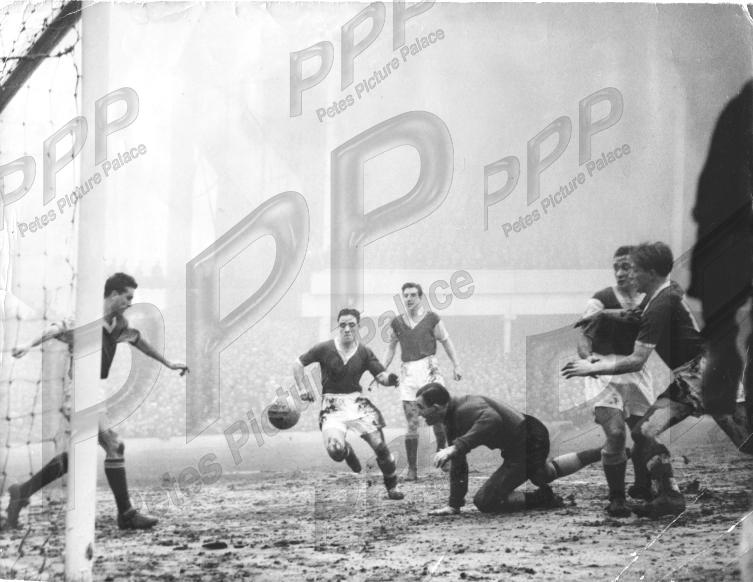- VGC - crsed corners, yellowing - the ball has escaped Hammers' keeper Gregory, who sprawls, but there's Malcolm Allison (probably) on the goal line to hack it clear before Hitchens (right) and McSeveney can get there. Result - 2-1 to the Londoners on a glue-pot of a pitch - just as it should be in January in the 4th round of the Cup. Superb shot.