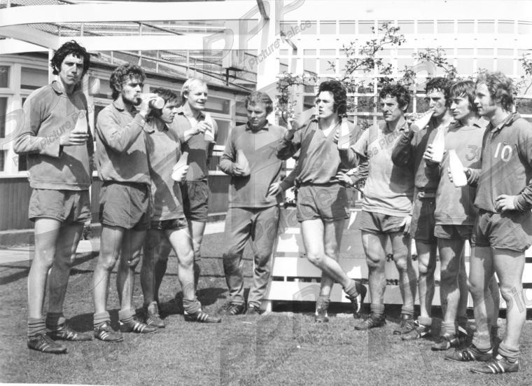VGC - unstamped original - team in training attire relaxing with a pint of milk