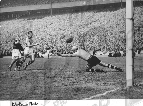 - VGC - crsed corner - Wilf Mannion opens the scoring for GB from close range past French keeper Julien Darui - Wilf scored twice, was voted "Man of the Match", and GB won 6-1 in front of an amazing 137,000 gate at Hampden Park
