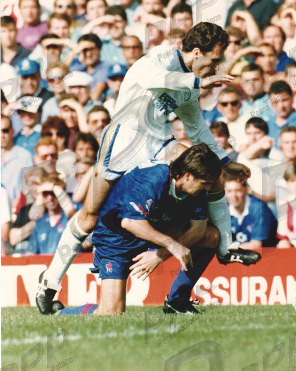 - VGC - unstamped original - 91/2 season maybe, unsure of Chelsea player - Steve Clarke? Anyway, he's being climbed over by ex-Blue Tony Dorigo