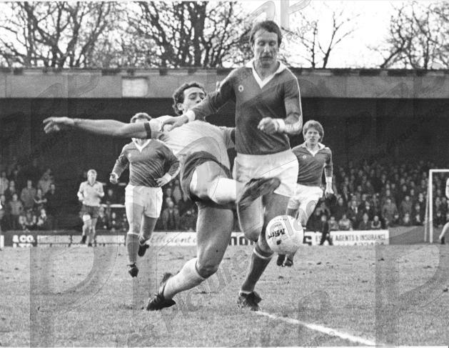VGC - Div 4 action at Spotland and it's a 1-1 draw in front of 3583. Dale's Taylor tries to get away from Johnson.