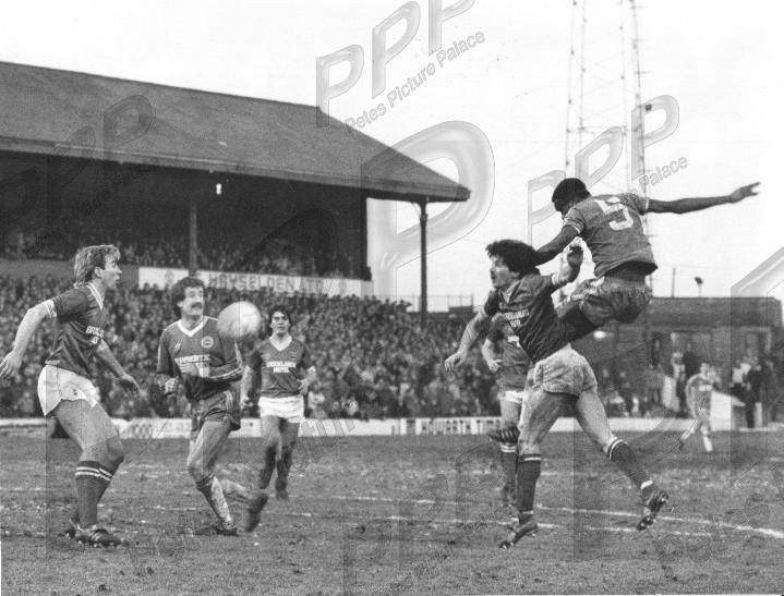 VGC - action at Oakwell, could be cup game 26.1.85 or league game 13.3.85