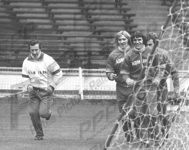 VGC - v sl edge crse - coach Bill Taylor leads the squad on a work-out before the match v Portugal. Currie & Watson seem to be enjoying it.