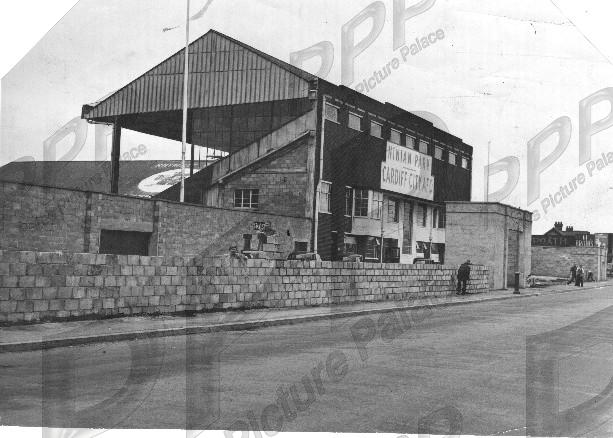 VGC - top corners trimmed off - Ninian Park upgrade - building a new wall at Sloper Road to replace wooden hoardings.