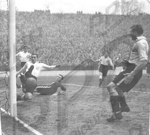 - VGC, sl crsed & trimmed - Freeman clears off the line watched by a few teammates and one Addick - New Year's Eve 1949 and Charlton won 2-1 with 32600 at the Valley