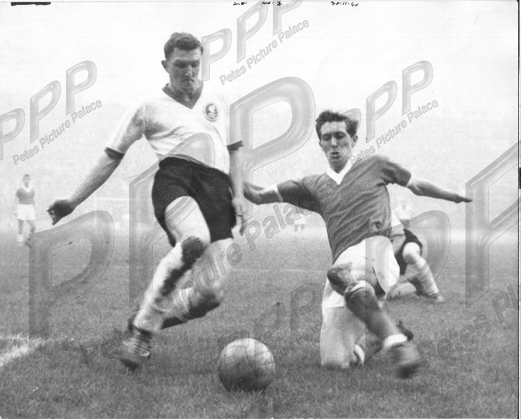 - VGC - Dennis Allen of the Addicks goes down on one knee but Liverpool centre half Dick White must have won this challenge. The visitors won this game 3-1.