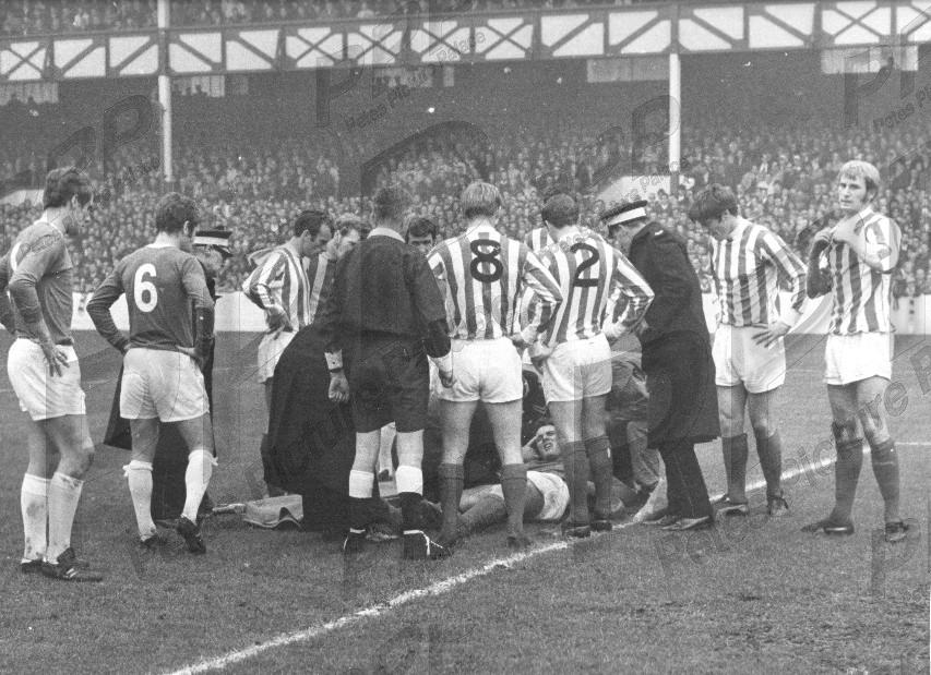 VGC - sl corner crses - very large so please beware of extra postal costs - Farmer is down with cracked ribs so Smith (right) takes off his jersey in readiness for donning the gloves - and doesn't look too chuffed about it. Royle was the culprit and he looks on sheepishly. And Everton won this game 6-2 with Joe scoring twice.