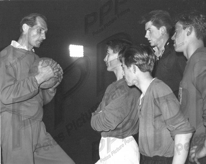 - VGC - unstamped original - Gil with what look like Blues youth team players (goalkeepers?), possibly after becoming Blues manager in 1960?