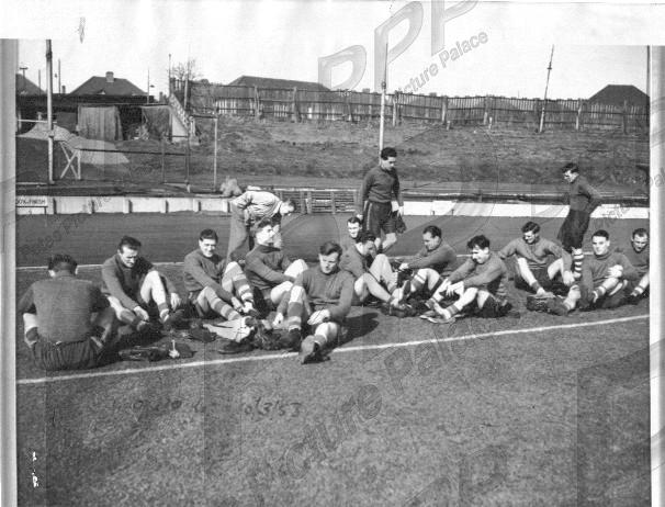 - Good, sl marks & staple hole in corner - no stamp but with label and press cutting to rear. Everton squad in Hove preparing for their FA Cup semi-final v Bolton and earlier game at West Ham.