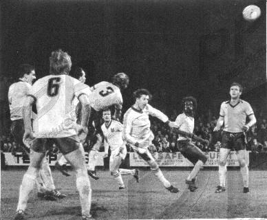 - VGC - small, unstamped - Tony "Bomber" Brown gets in a header against the Bantams in a game won 2-0 by the Gulls at Plainmoor. Bomber, of course, is a legendary figure in the West Midlands. He played 45 league games for Torquay, and his 11 goals there took his career total up to nearly 250.
