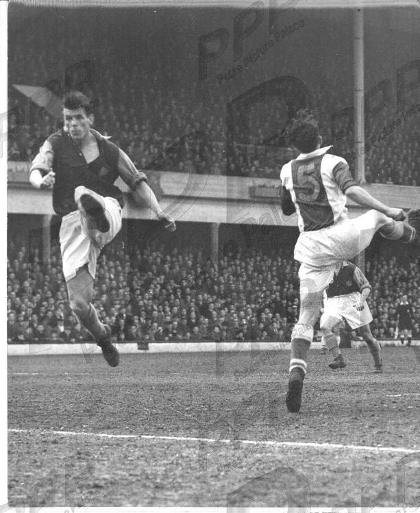 - VGC - "Spot the Ball" at Upton Park - Hammers' striker John Dick and Oldham centre half Bill Naylor seemingly at cross purposes in this 2nd Division game won 1-0 by the visitors.