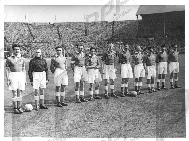 Good, with vertical crease on left side and corner crses. The Bishops line up for the all-Durham final v neighbours Willington, with 88,000 fans present - most of County Durham - in a repeat of the 1939 final which Bishops won 3-0. In this match, the 1950 final, Willington got their revenge, winning 4-0.
