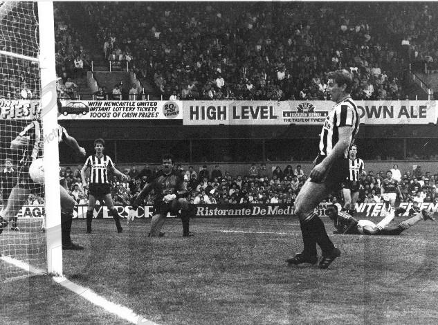 VGC - goal for Charlton as the diving Leaburn heads in past the kneeling keeper Thomas and a couple of Newcaslte defenders including Roeder who's rooted to the spot. The Addicks won this game 0-3.