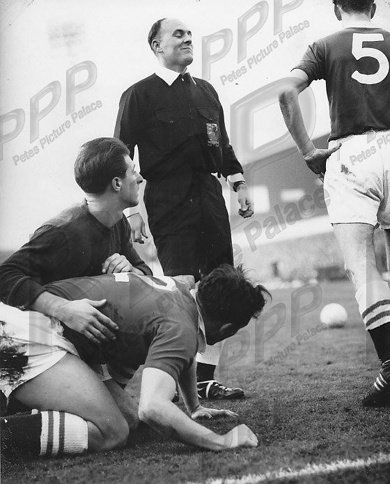 - VGC - cellotape has been removed from corners so they are a bit sticky - care needed! Keeper Reg looks after the fallen Peter Sillett until the referee (Mr Windle) turned up