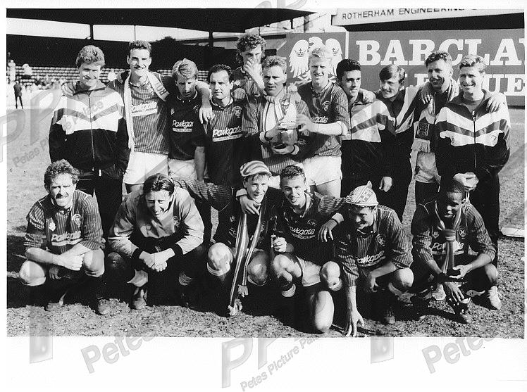 VGC - black & white original taken from a colour negative - United are champions of Div 4 and here they are after drawing 0-0 with Cambridge to win the trophy