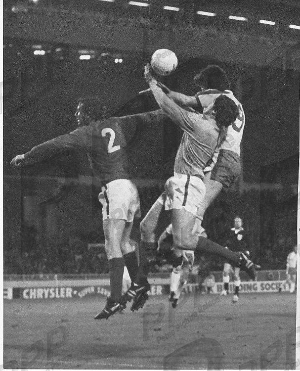 VGC - No 9 David Johnson rises above Dai Davies in the Welsh goal to head home his second goal in the 2-2 draw at Wembley