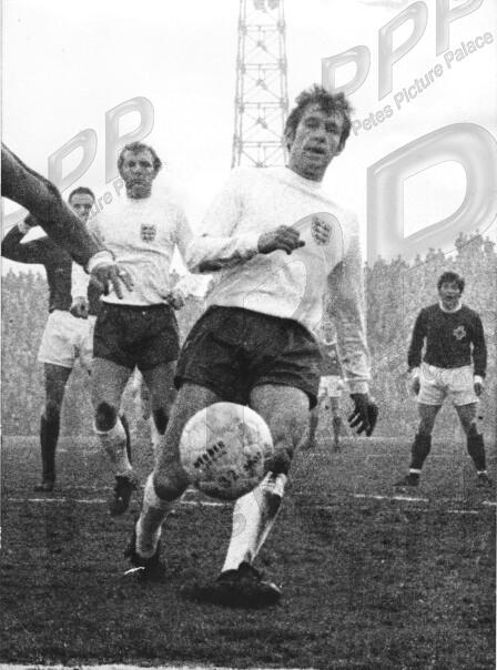 VGC - sl grainy - Keith in action for England v N Ireland, with Bobby Moore and most of Derek Dougan watching keenly