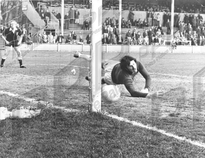 - Fair - a bit crsed at edges with a couple of tears repaired by cellotape on the back - Barry Lyons has scored a pen past the Gulls' keeper Terry Lee