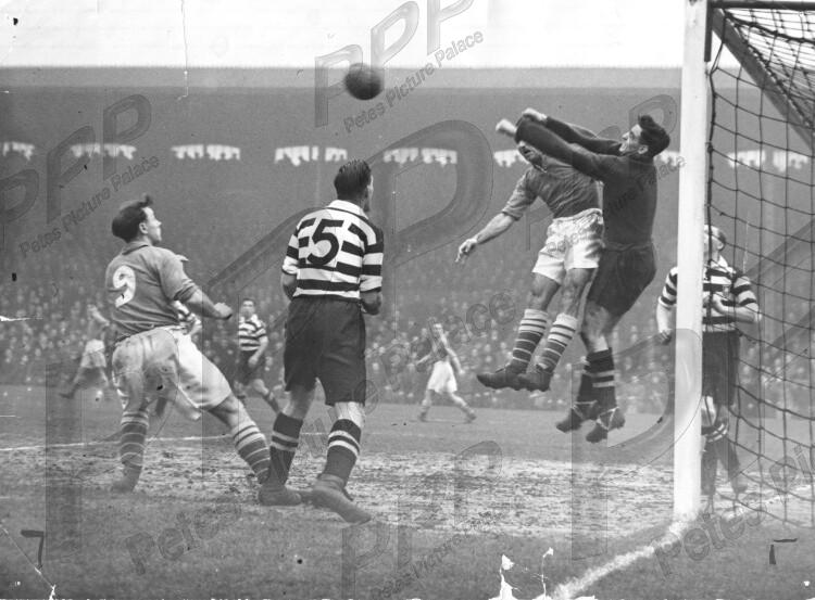 - Good, tears at bottom, corner crses - goalmouth action with both sides in change kit for this 3rd round Cup match at the Cottage which Preston won 3-2. PNE keeper Thompson punches away from Stevens while No 9 Jezzard and No 5, the Aussie Marston, await developments and Walton covers the line