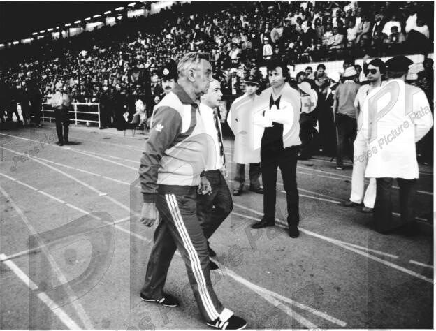 - VGC - b/w print from colour negative - Joe goes towards the troubled Heysel terraces to plea for calm, on that fateful day in Brussels