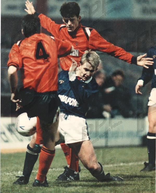 VGC - Billy Dodds is crowded out by United's Jackson and McInally
