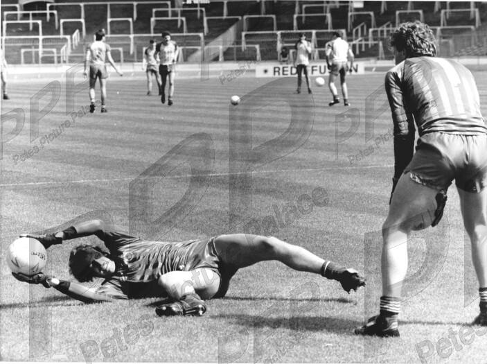 - VGC - keepers Tunks & Stewart get some practice in on the hallowed turf before the next day's Cup final v Brentford