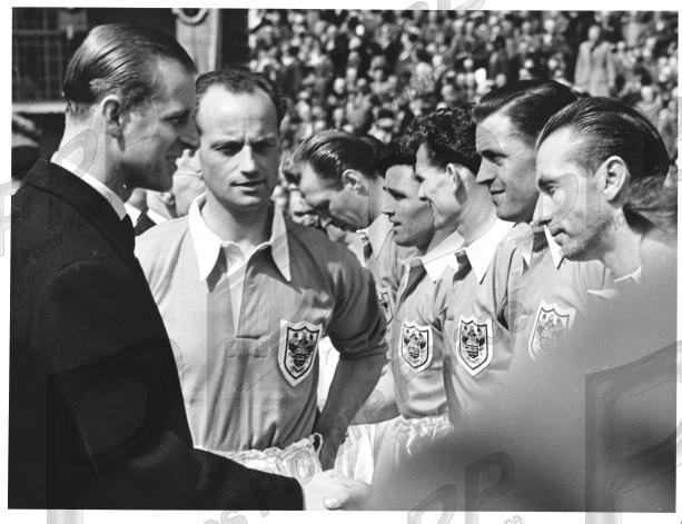 VGC - The Duke shakes Stan Matthews' hand before the big game, as Harry Johnston looks on although I guess he wouldn't have had to introduce the most famous footballer in the World!