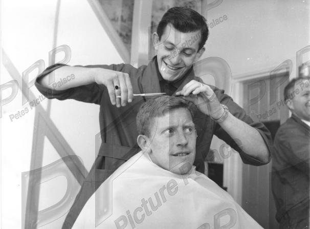 VGC - Johnny has opened a salon in Sheffield, decorated in blue & white of course, and here's his teammate Tony Kay going under the scissors. But though Johnny is a keen barber, it's football first for him!