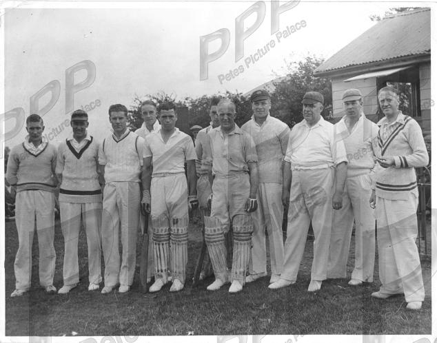 - VGC - unstamped original - Leicester City players and staff on a cricket outing, July 1939. Ex-manager Frank Womack is 7th left, padded up and he had resigned 2 months earlier. Centre half Fred Sharman is 3rd left and, also in pads is centre forward George Dewis, 5th left. Can anyone help with other ID please?