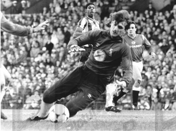 VGC - keeper Stuart saves at the feet of a Man Utd forward as a young Carlton moves in to support